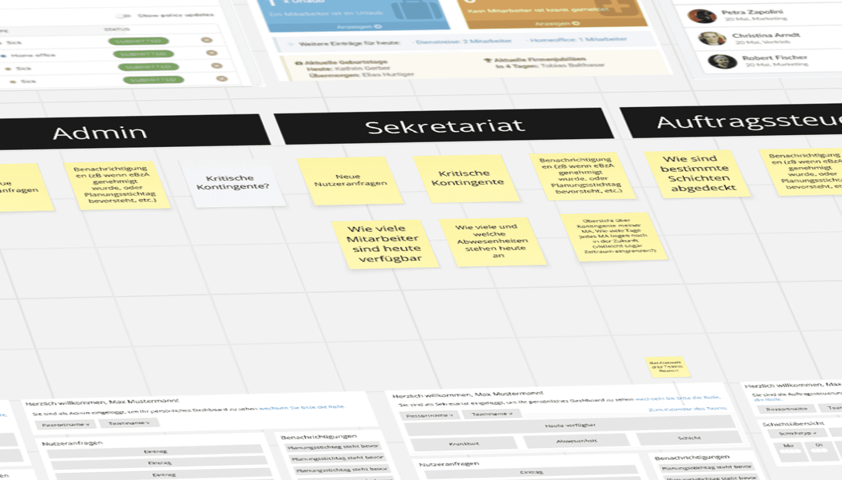 Analyse zentraler Rollen, Aufgaben und Nutzungskontexte, Ableitung von Personas sowie rollenspezifischen Journeys zur passgenauen Ausgestaltung von Workflows und Berechtigungen.