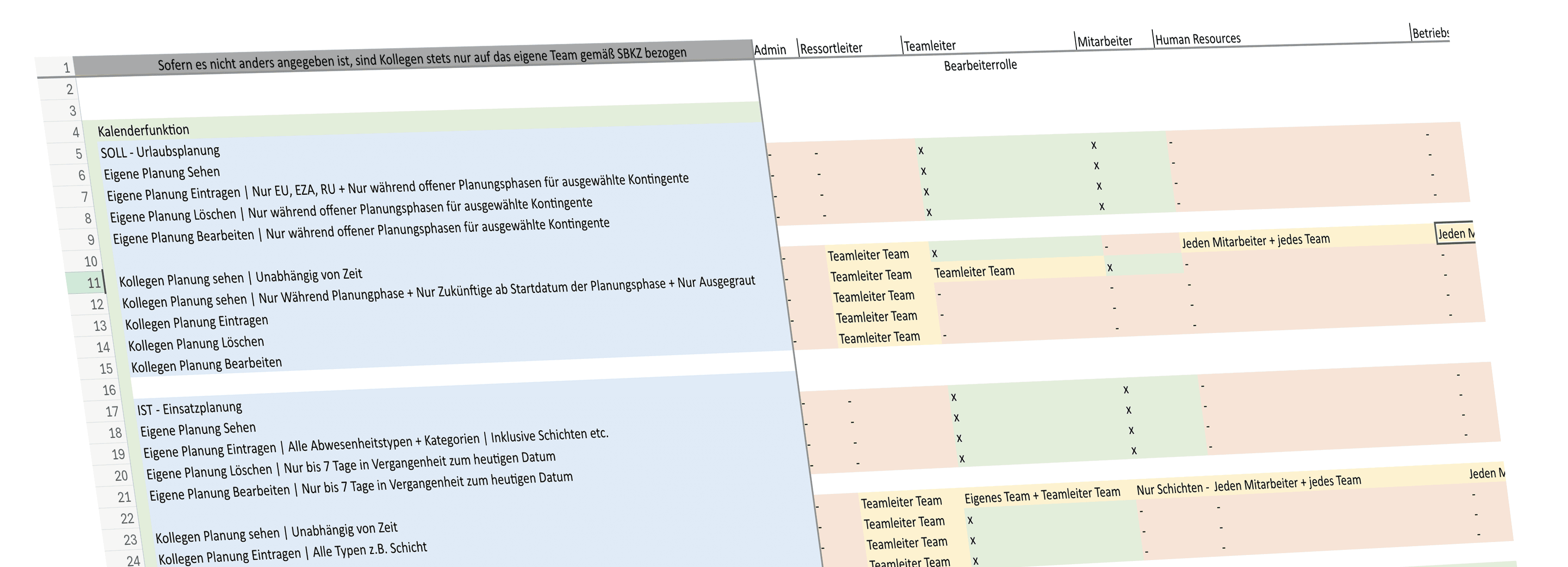Unterschiedliche Berechtigungsstufen und regionale Regeln beeinflussten Datensichtbarkeit, Kalendernutzung und administrative Funktionen innerhalb des Systems.