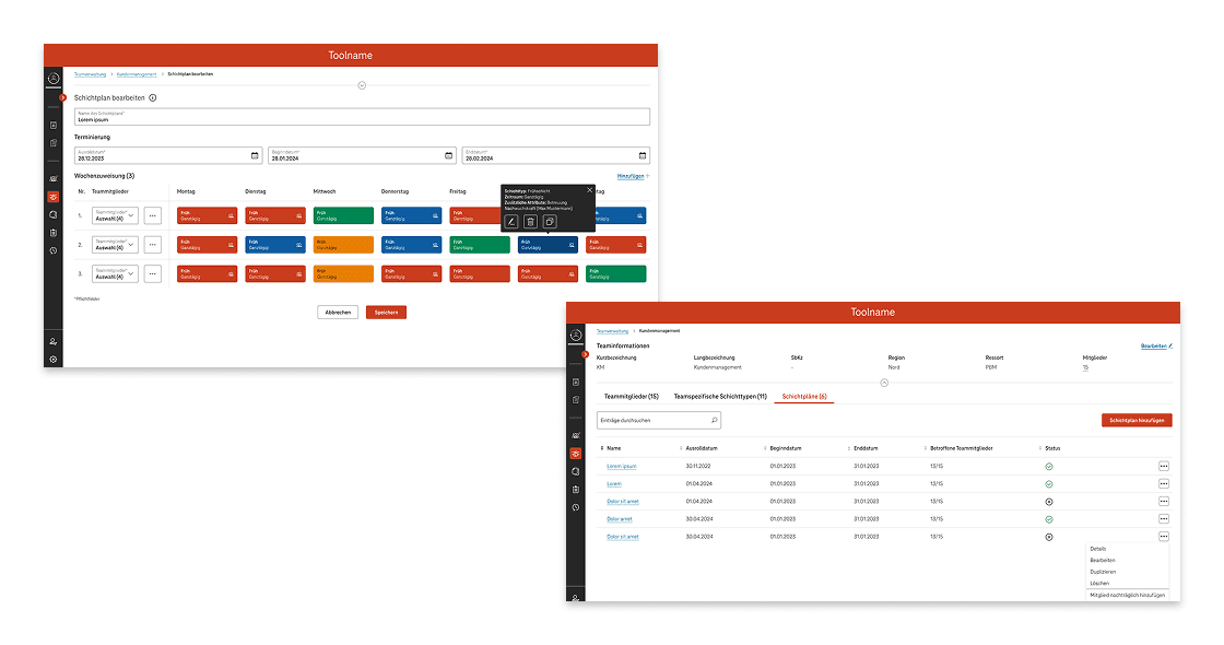 Für die Einsatzplanung von rund 20.000 Mitarbeitenden existierte kein zentrales System. Planung und Abstimmung erfolgten über verteilte Tools, Excel-Listen und manuelle Prozesse, ergänzt durch bestehende Insellösungen mit unterschiedlichen Logiken. Die Anforderungsanalyse war entsprechend komplex: Neben Lasten- und Pflichtenheften flossen zahlreiche weitere Quellen wie Präsentationen und regionalspezifische Prozessbeschreibungen in die Konzeption ein, teils mehrfach pro Funktion und mit stark variierenden Anforderungen.
